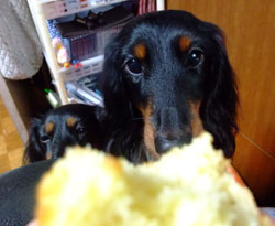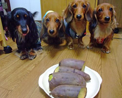 そんで、dたちの離乳食じゃあるまいな?っていう、サツマイモと蒸し鶏の朝ごはんで、ボクはちょっぴりバリエーションがなくて物足りなかったけど、これでおっきくなったdとバビは尻尾フリフリでごはん食べてましたぁ。