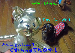 確かにマロンはママが買ってきた袋をビリビリにしておもちゃ出したし、届かないところに飛び乗っておもちゃゲットして食べちゃったし、それをまた隠されたからイラっとして飛び跳ねてたら、なんかパン食い競争気分になっちゃって、そこにあったエロくまちゃんの手をもぎっちゃったし〜。