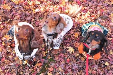 先週、ミルがマハちゃんと来た時とはずいぶん変わっちゃってたらしいけど、それでもキレイなカサカサのモミジのレッドカーペットと、ふっかふかのきんとん雲みたいなイチョウの絨毯を両方とも楽しめて、マロンはついでにおもちゃも楽しめて、ビーたんはついでに枯れ葉とたわむれてミノビーも楽しめて、クリスはちょっとしたアクシデントでとばっちりも楽しめて(??)、ママたちは写真と紅葉も楽しめて、おなかいっぱいのお出かけになりましたぁ〜!