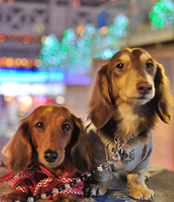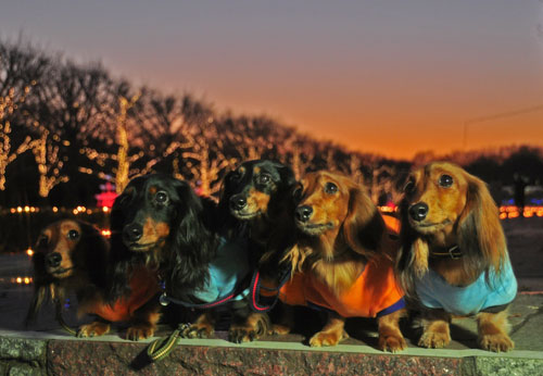 みんな真っ暗になんないうちにワンとイルミを撮ろうっていうママ魂胆?