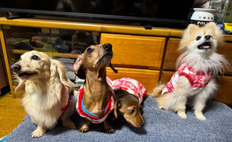 PONちゃんのママからお洋服をもらって、みんなで着ました。