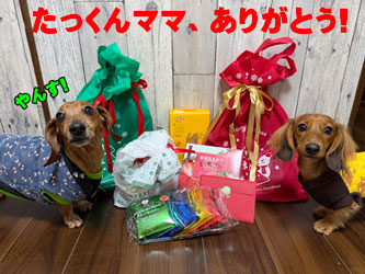 またまた、たっくんままサンタさんがすごーいいっぱいのプレゼントをくれたでやんす。