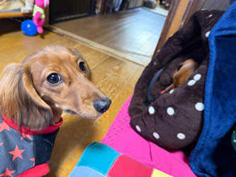 ボチたちは猛お先に寝てたけど、ふとん乾燥機もしないで寝たから、お布団が冷たくて寒かったでありまっす。
